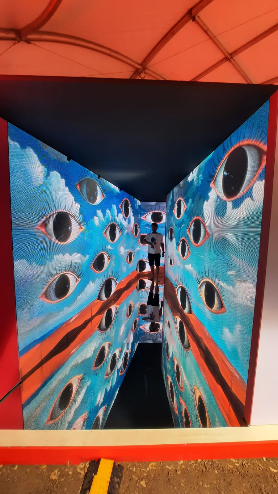 Arduino PIR sensor-enabled tunnel app that plays videos on different screens.